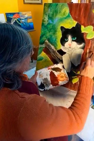 Sus pinturas recorren paisajes, escenas y figuras que transmiten calma, movimiento y profundidad, invitando al espectador a detenerse y descubrir cada detalle.